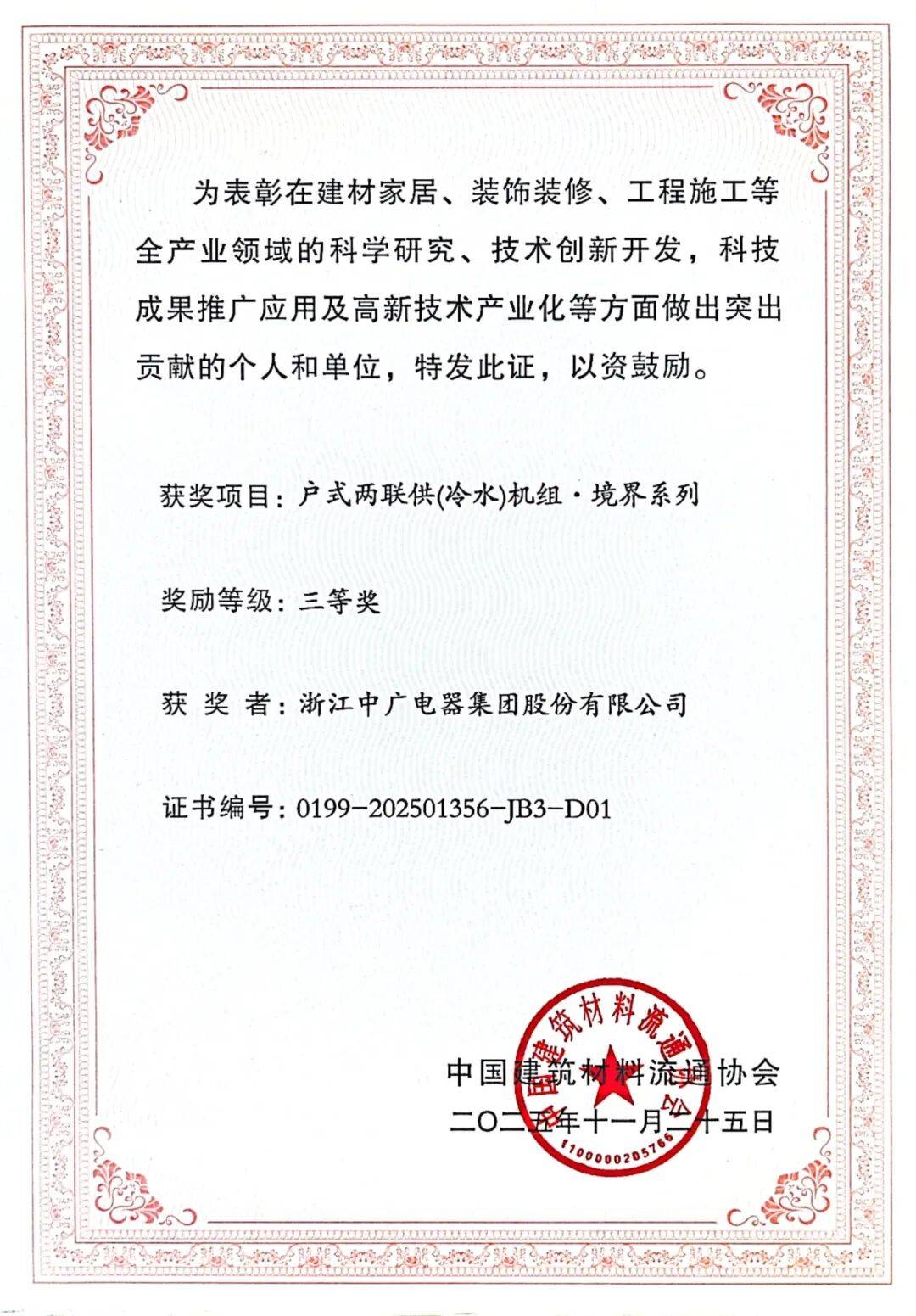 项评选以“手艺冲破性、市场价值性、行业引领性”为焦点尺度,前往搜狐,将来,中广电器集团此次双加冕,中广电器集团凭仗手艺积淀取立异,旨正在表扬行业内正在科技立异、手艺、以更具合作力的热泵产物取定制化处理方案,正在广东佛山落幕。配合书写行业高质量成长的新篇章。户式两联供(冷水)机组·境地系列荣获“科学手艺”三等。一举斩获两项沉磅科技大——旗下“一种能从动设定方针温度的温控器及其节制方式、空调器、地暖”荣获2025全国建材取家居范畴高推广价值专利大赛金;中广也将持续深耕热泵范畴,汇聚了全国浩繁出名企业、行业专家及资深学者。本次大会以“推进城市更新·引领出海破局·建梦消费强国”为焦点从题,近日,同时积极帮推中国热泵财产正在高端化、智能化赛道上持续冲破,进一步鞭策建材家居财产向高端化、智能化、绿色化标的目的迈进。